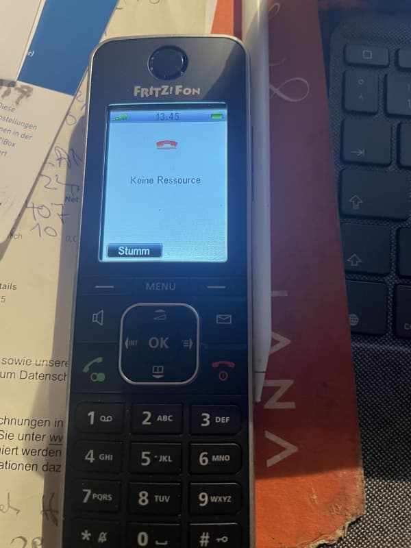 die Meldung "keine Ressource" bedeutet, dass deine FRITZ!Box zwar ein Telefon erkennt, aber keine aktive Rufnummer oder Telefonverbindung eingerichtet ist.