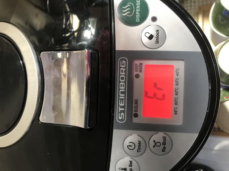 Er Anzeige am Display?Die Temperatureinstellung funktionert. Hab das Gerät mehrmals komplett ausgeschaltet, mit Kabel rausziehen, ich bekomme immer diese Er Anzeige. Danke für die Hilfe!