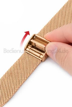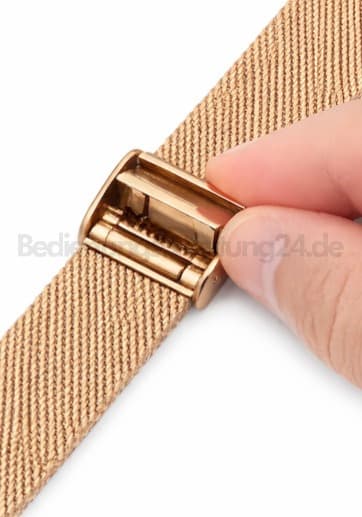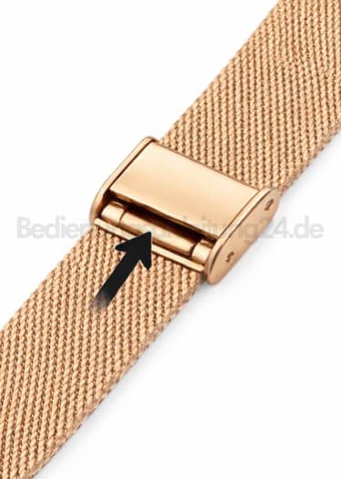 Mesh- / Milanaise-Metallarmband verstellenDas Band wird enger oder weiter, indem du die Schließe entlang des Bands verstellst und wieder einrastest.