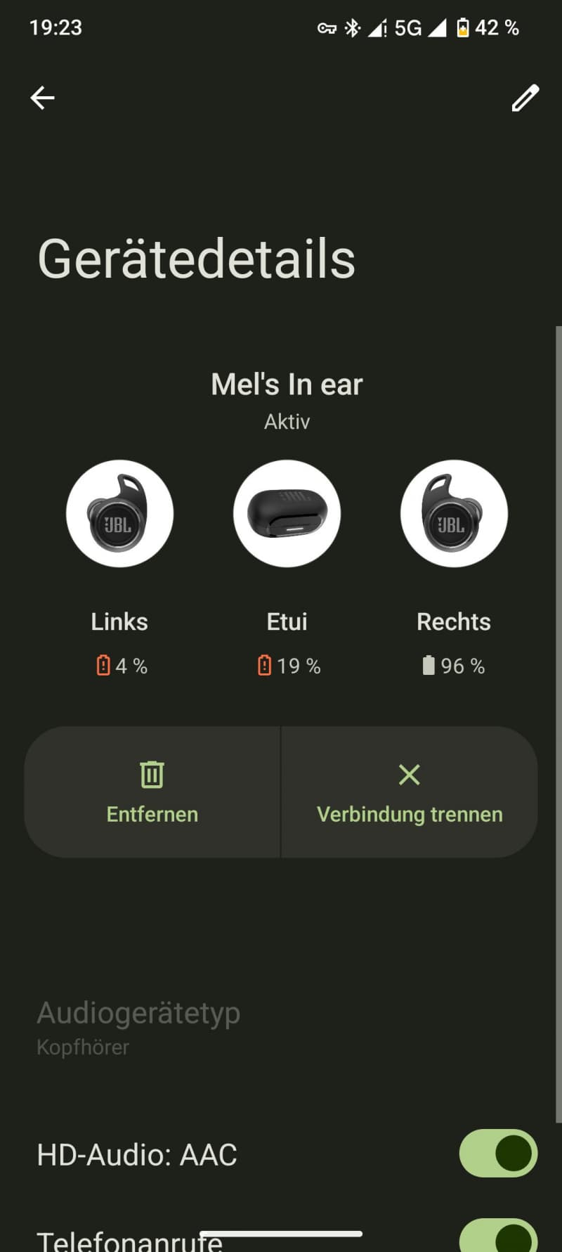 Wenn ein Ohrhörer regelmäßig deutlich schneller leer ist, deutet das eher auf einen Defekt als auf normales Verhalten hin. Eine kurze Reinigung der Lade-Kontakte kann helfen, ansonsten ist eine Reklamation oder ein Austausch sinnvoll – gerade bei dem Preis.