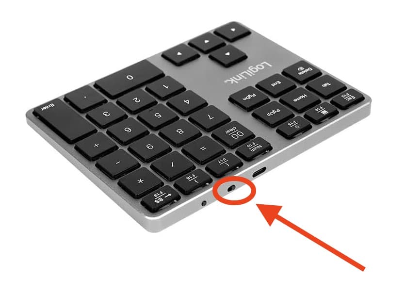 Du kannst den Nummernblock ein- und ausschalten. Das Gerät hat einen kleinen physischen Ein/Aus-Schalter an der Rückseite, mit dem du es ein- und ausschaltest.