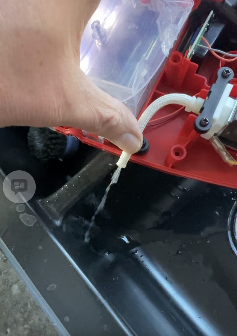 Vielen Dank für das Teilen eurer Erfahrungen und Anleitung für die Reparatur bzw. Fehlerfindung. Auf der Rückseite die untere Schaube lösen und den Deckel anheben, dann kommen sehr viele Schrauben zum Vorschein. Die meisten sind Kreuzschlitz und 2 Torx mit Pin. Habe mit dem Sieb angefangen. Ohne Erfolg (OE) Dann Düsen an der Saug-Wischeinheit mit einer Nadel gereinigt. OE Verkleidung an der Saug-Wischeinheit abgebaut. Schlauch nach der Pumpe gelöst und durchgeblasen. OE immer noch kein Wasser. Schlauch zur Pumpe gelöst und versucht zum Wassertank hin durchzublasen -> Verstopft! Schlauch mit Kompressor durchgeblasen. Frei! Wasser ???? fließt wieder. ???? Woher ich das weiß:eigene Erfahrung
