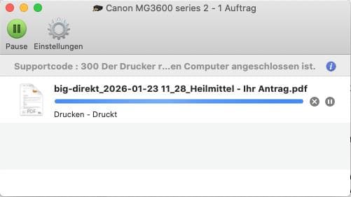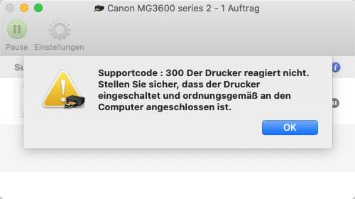 WLAN-Verbindung zwischen Computer (iMac) und Drucker (Prisma MG3650S)?Ich bekomme keine WLAN-Verbindung zwischen meinem Computer und Drucker hin. Beim Drucker erscheint immer nur die Fehlermeldung: Supportcode 300: Der Drucker reagiert nicht ...