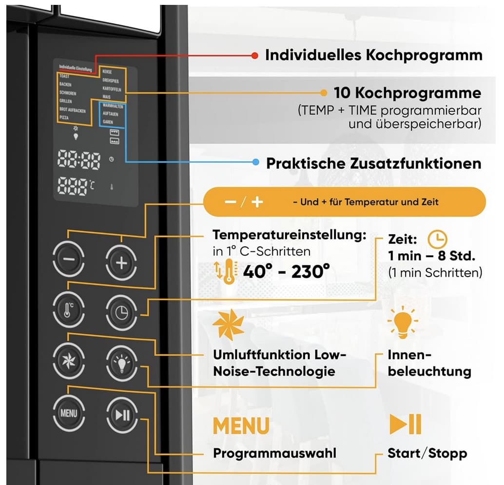 Bedienungsanleitung (PDF)(10,4 MB)Bedienungsanleitung für den Stillstern MB35-LED 2G Minibackofen. **Inhalt:** Sicherheitshinweise, Vor der Erstanwendung, Geräteübersicht, Einstellungen, Temperatur/Zeit, Menü und Programme, Bedienung, Reinigung. Download PDF anzeigen